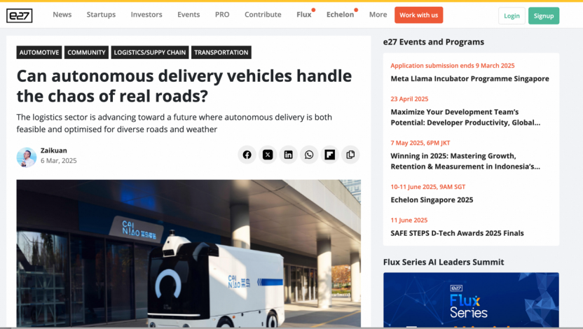 随着以DeepSeek为代表的人工智能和具身科技等前沿技术的火爆出圈,外国媒体对杭州科创发展的关注度持续升温。近日,东南亚地区科技媒体刊登了菜鸟CTO李强(花名:在宽)的署名文章,分享AI自动驾驶在中国物流领域的应用,助力行业降本增效。