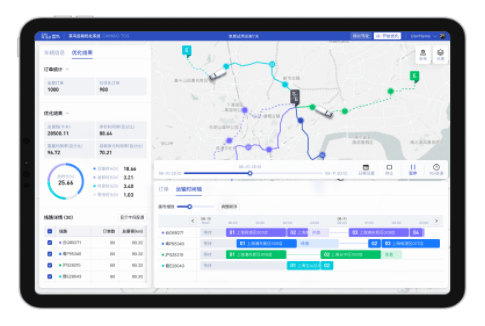 在严格的时效要求及复杂的运输约束下,通过智能算法⾃动规划运输点的配送顺序和运输路径,辅以⼈⼯经验对其进⾏⼿动调整,最终将规划结果落地执⾏的⼀站式⼈机协同平台。