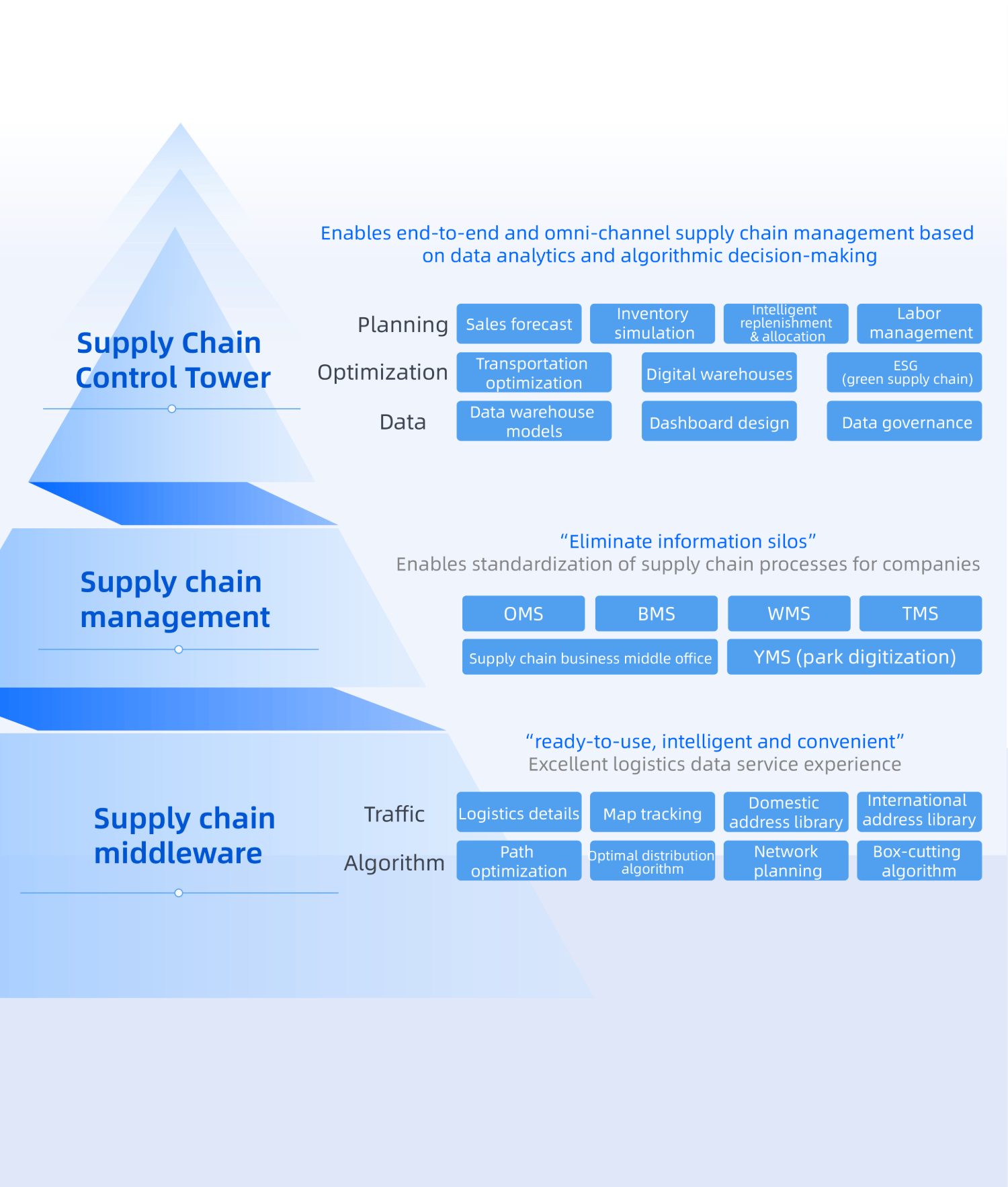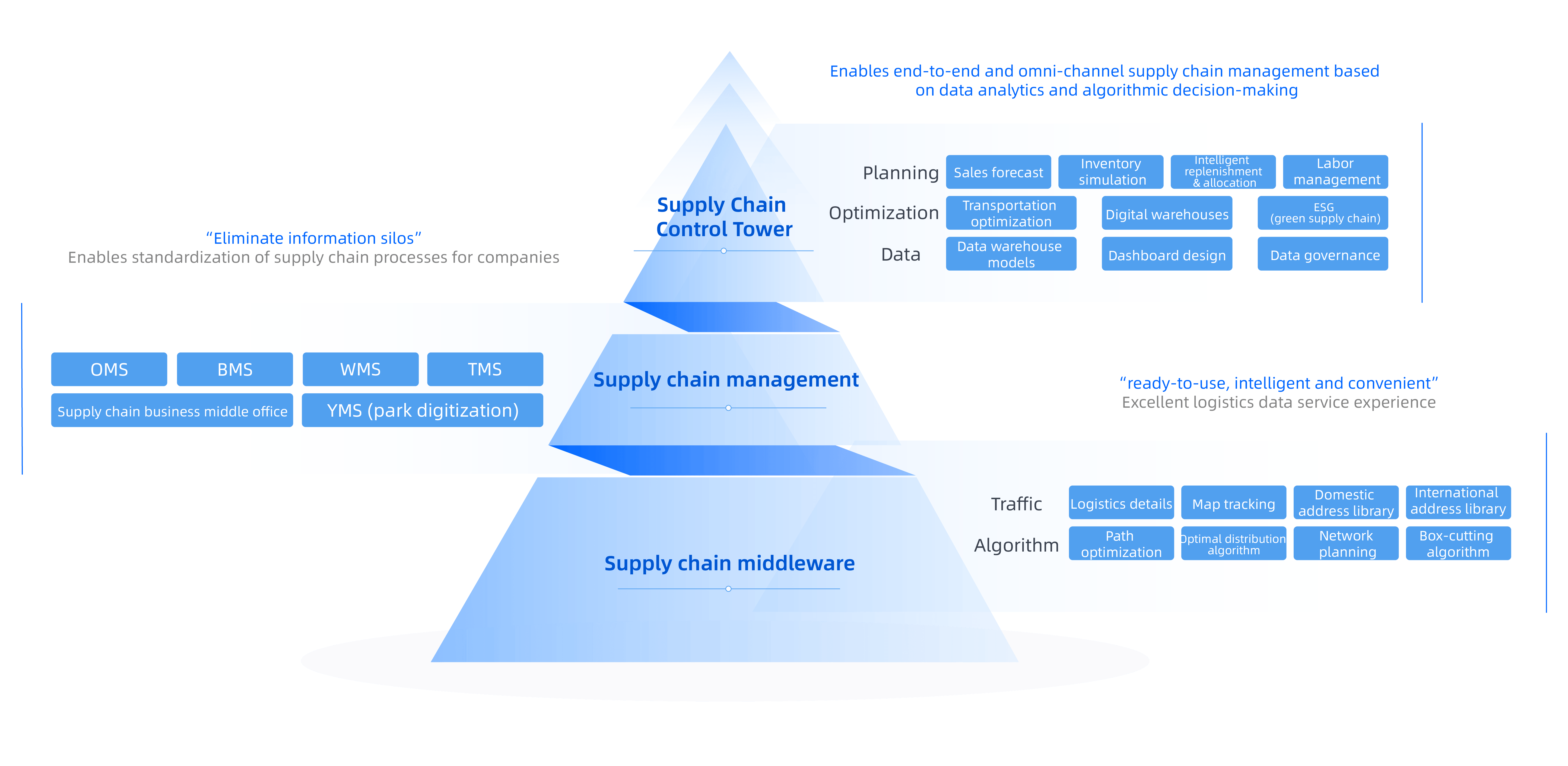 By leveraging core capabilities such as panoramic visualization, exception alerts, intelligent diagnostics, decision support, and business collaboration, the supply chain control tower helps enterprises achieve data-driven operations and continuously optimize supply chain processes in planning, procurement, production, warehousing, logistics, and other areas.
